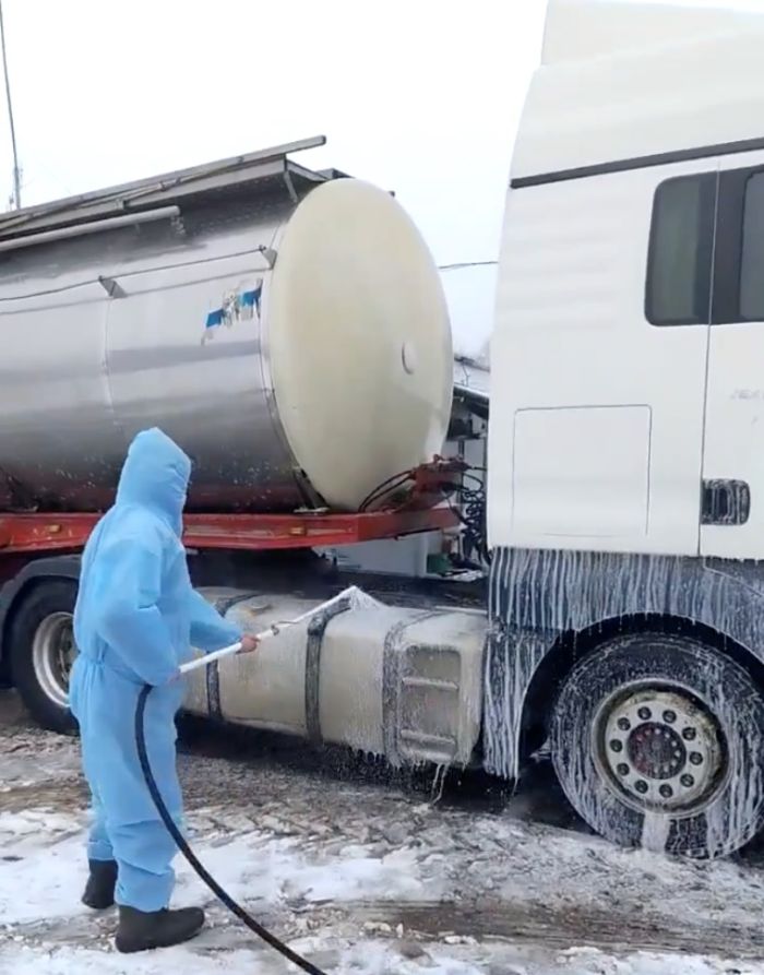 Ветеринарная станция округа регулярно обрабатывает транспорт, который доставляет молоко с ферм. Машины проходят дезинфекцию по графику — это обязательное требование для всех перевозчиков молочной продукции.